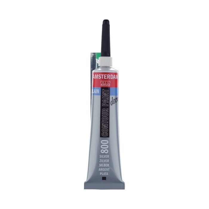 Amsterdam contour paint adheres to smooth surfaces and is heat-resistant. Use the precise dozing nozzle to create clear, fine outlines, patterns or dot work. The solid lines will stand out and add depth to your work. Silver (800).