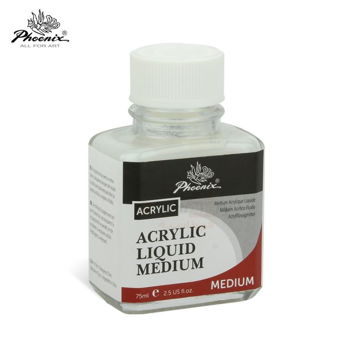 Its facade is in form of milky liquid but becomes clear and transparent after drying. It is mainly used for diluting acrylic colours and enhancing the fluidity of colours.