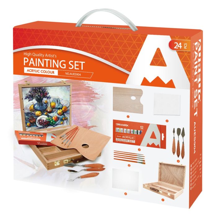 COMPLETE SETS FOR ARTISTS - Incredible painting set containing 12 acrylics, 5 brush sizes, 3x palette knife, plastic palette, and one clean painting canvas. Our art kit comes in a high quality wooden box that can also serve as a table easel. Let your imagination run wild with all the painting supplies you could need in one perfect painting kit!