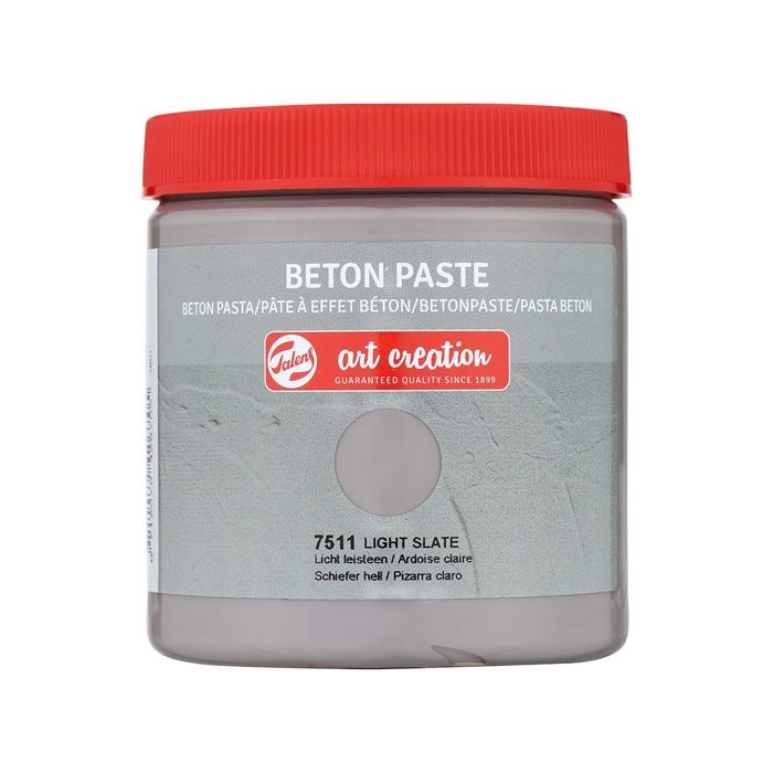An opaque paste, which gives a rough concrete look which fits in well in today's modern interiors. Suitable for a wide range of surfaces e.g. cardboard, wood, stone, glass, polystyrene or ceramics. It is not necessary to apply an undercoat on the ground. Beton Paste is more a paste than a paint and is only suitable for indoor use. To create a rougher surface use a palette knife, and for a smoother finish use a brush or sponge. Drying time: 2 hours. Hardens in 24 hours. Stir before use. Coverage: 2 m²/L.