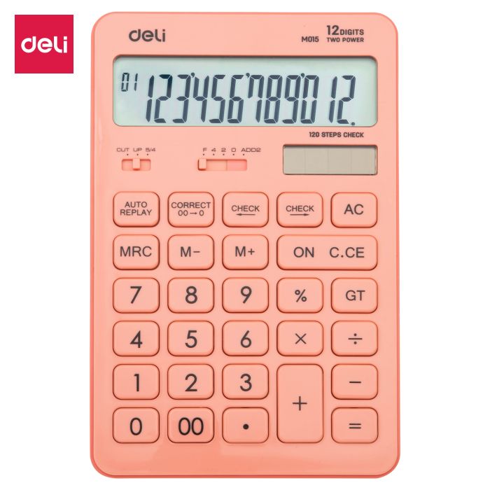 12 digits, Dual Power, Big and Clear Display, 1 Million lifetime press button, 120 steps check and correction function, Durable plastic key, Acrylic screen cover
