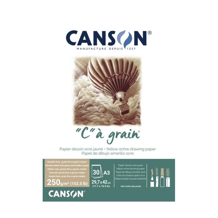 Description / Canson C a' grain A3 yellow ochre drawing paper 30S 250g