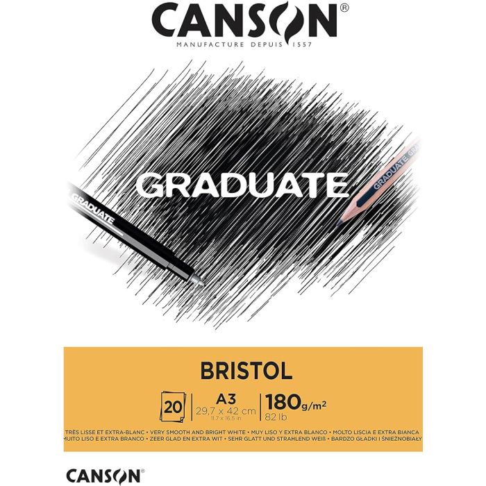 Description / Canson Graduate Bristol 180gsm A3 Paper, Very Smooth - 400110384
