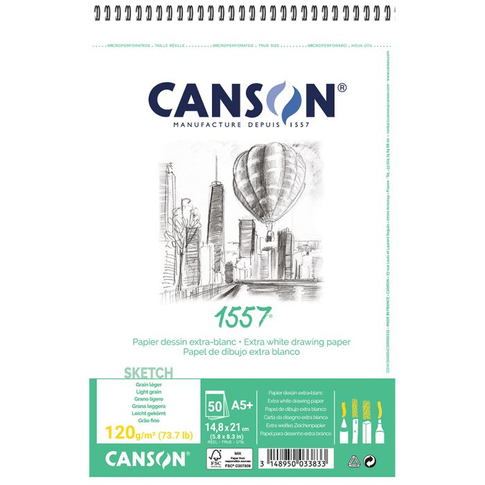 Description / Canson Spiral 1557 Extra White 180gsm A5 Sketch Paper - 31412A000
