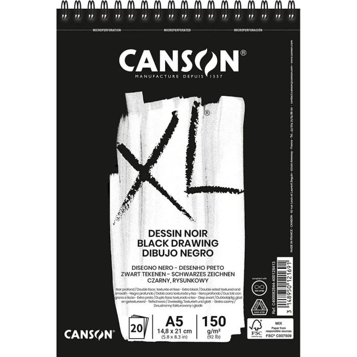 Description / Canson XL - Black Drawing Paper - A5 150g - 400082844