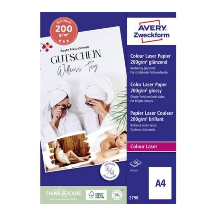 Avery Colour Laser Paper (A4, Part No. 2798) is high-quality, bright white paper designed for use with color laser printers. It provides excellent color reproduction and crisp, sharp printouts, making it perfect for vibrant presentations, brochures, flyers, and other professional documents.