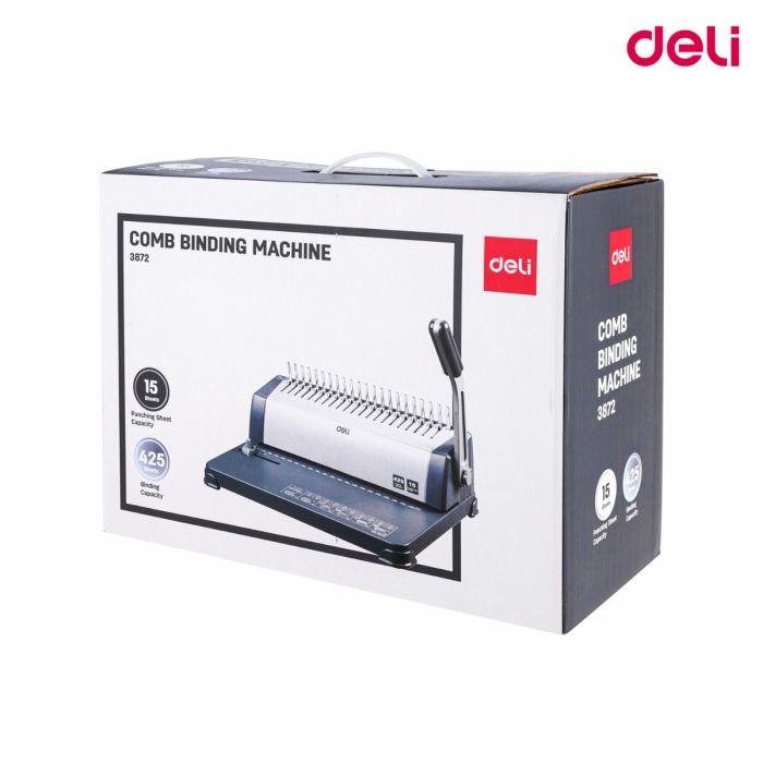 The Deli-3872 Comb Binding Machine is a compact and efficient binding machine designed to bind up to 15 sheets at once. It features a simple, user-friendly operation with adjustable settings for different document sizes and combs. Perfect for office use, this machine allows you to create professional-looking bound documents for presentations, reports, or projects. Its durable construction ensures long-lasting performance, and the compact design makes it easy to store and use when needed.