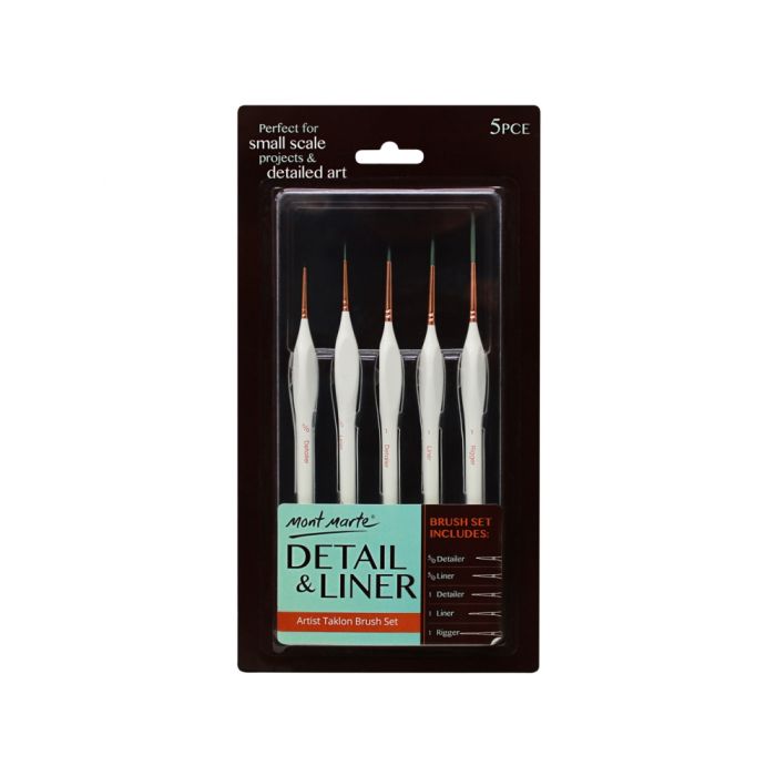 The Mont Marte Detail & Liner Brush Set is great for small scale projects and detailed art. The thick easy-grip handles allow you to achieve minor details and are suitable for all types of paints ad mediums including acrylic, oil & watercolour.