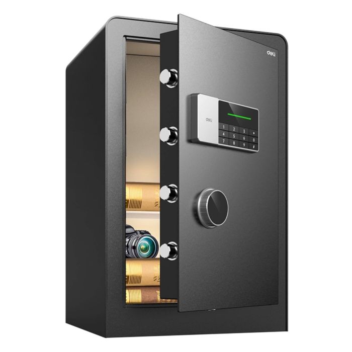The Digital Safe 60x38x36cm Black T552 Deli is more than just a safe; it's a commitment to safety and security. Whether for personal or professional use, this safe offers a synthesis of advanced technology and construction, ensuring that your treasured items are well-protected. Its user-friendly features, combined with Deli's esteemed reputation, make it an ideal choice for those who prioritize security without compromising on style. Choose the Digital Safe T552 for an assurance of safety and a guarantee of peace of mind.