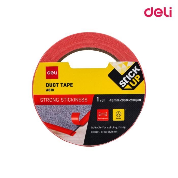 Deli A616 Red Duct Tape (48mm): A durable, multi-purpose adhesive tape with a 48mm width, ideal for repairs, sealing, bundling, and crafting. Strong adhesion, tear-resistant, and easy to apply on various surfaces. Suitable for both indoor and outdoor use.