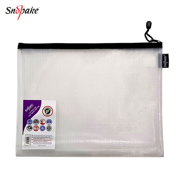 The Eva Mesh Zipper Bag HC White SNOPAKE - 15839 is a high-quality zipper bag made from durable mesh material, featuring a clean and sleek white design with high-contrast accents. This bag is ideal for organizing and storing small documents, stationery, or personal items. The mesh construction allows you to easily see the contents, while the secure zipper closure ensures everything stays in place. Perfect for both professional and personal use, this bag helps keep your essentials organized and protected while offering a stylish, minimalist look.