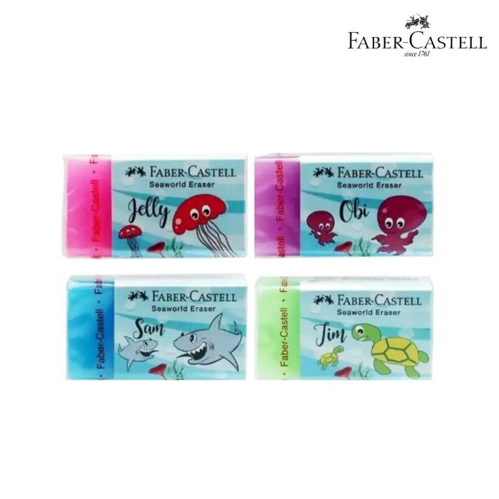 Faber-Castell Seaworld eraser series has attractive "jelly-like" translucent texture. This formula makes the eraser soft and guarantees excellent clean and smear-free erasing, ideally for 2B pencil. The eraser residue and dust easily roll together for easier clean up. The comfort edge (chamfered corners) are thoughtfully crafted for precise erasing and prevent breakage.