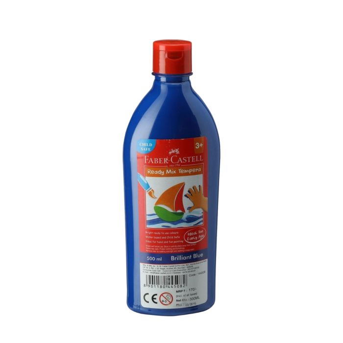 Ready-mix tempera are ready to use paints in bright playful colors specially developed for early age. Use of ready-mix tempera is ideal for motor skill and sensory development in early childhood. Ready-mix tempera also offers expression of creativity through coloring and painting activities, giving young children a sense of achievement. Non toxic and completely safe for children age 3 and above. Ready to use and mess free paints. Washable from most surfaces including hands, skin and some fabrics. Unique vibrant colors give easy flow and great coverage. Dries to opaque finish and can be diluted with water for transparent effect.