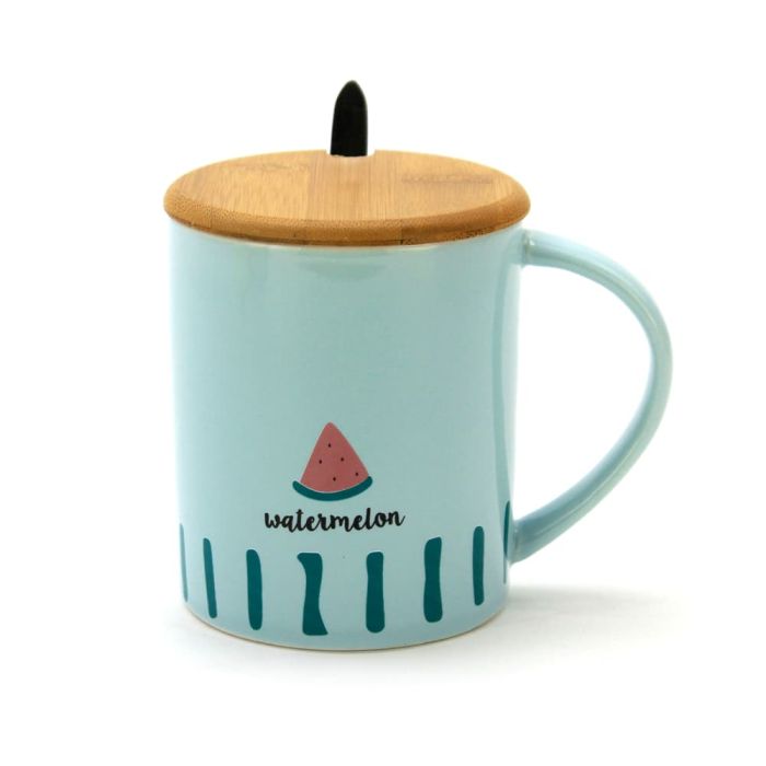 You're reviewing: Fancy Ceramic Coffee or Tea Mug with Handle, Lid and with Spoon - Watermelon