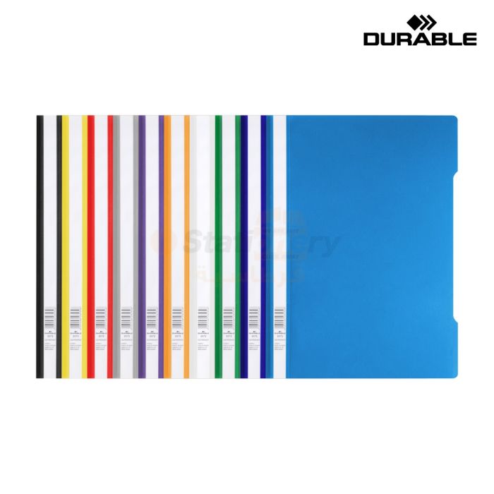 An Inexpensive Folder Securing Punched Paper For Filing And Presentation. Coloured Back and Transparent Front Cover. Full-Length Index Strip and 80mm Fastener for Punched Papers.