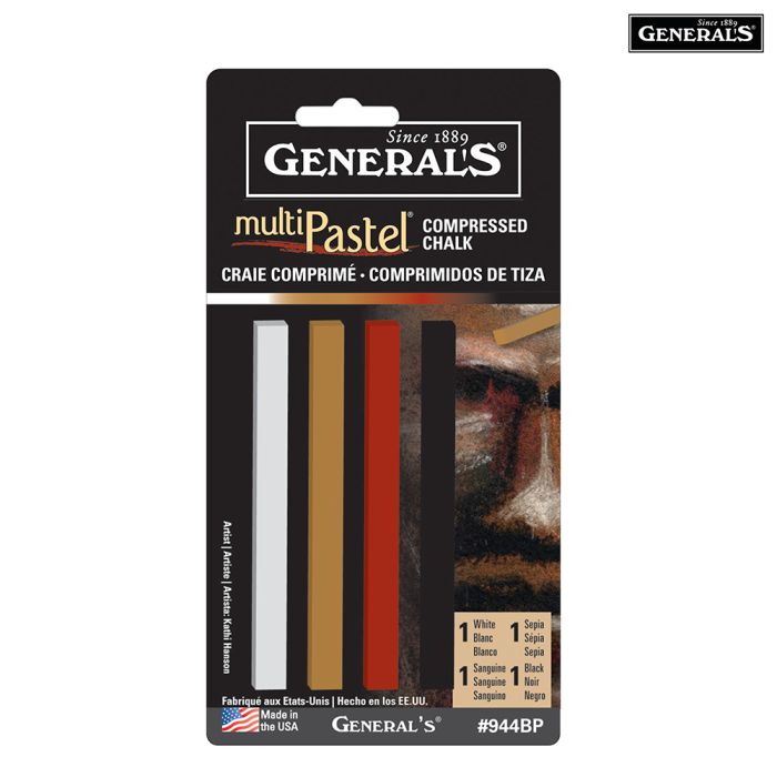 General’s Compressed Pastel Crayons are extra-smooth , oil-free , blendable pastel crayons in a variety of pigment-rich colors. These handcrafted, artist-quality crayons are offered in a set of four traditional sketching colors, including White, Sanguine, Sienna, and Black. Made in the USA.