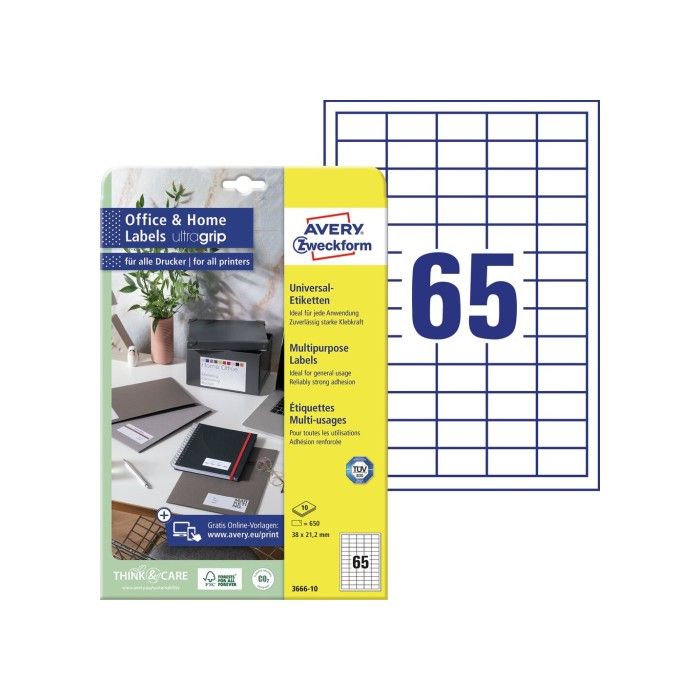 Labels 38x21.2mm Inject Laser Copy 65 Labels AVERY - 3666-10