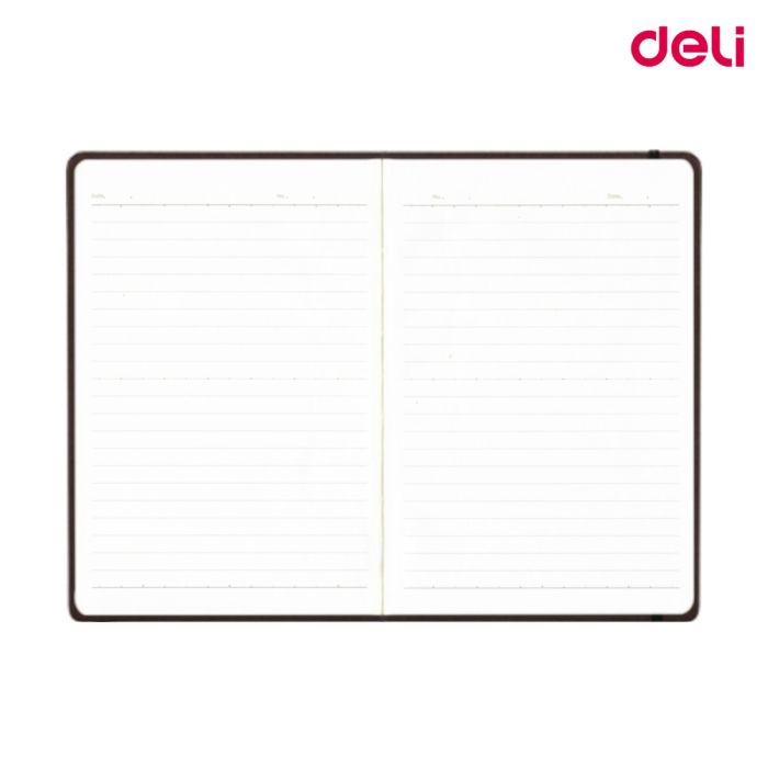 The Deli N111L Leather Cover Notebook is a premium A5-sized notebook with a stylish brown leather cover. It offers a sophisticated design with high-quality pages, perfect for note-taking, journaling, or professional use. The durable cover provides a sleek look and reliable protection for your notes, making it ideal for both personal and business needs.