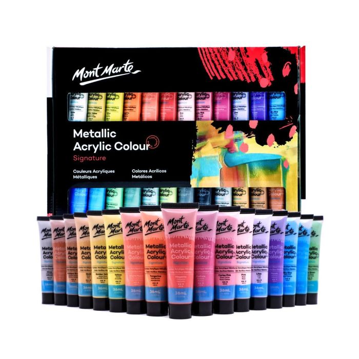 Description / Mont Marte Metallic Acrylic Paint Set 24pc x 36ml