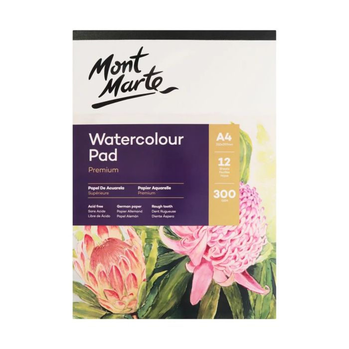 Description / Mont Marte Watercolour Pad German Paper A4 300gsm 12sht