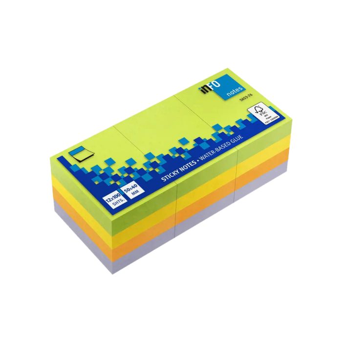 The Sticky Note Pad 12x50x40mm Inspiration Color Spring comes with 12 packs of 100 sheets each, offering a bright and functional way to keep track of notes, reminders, or tasks. The 12x50x40mm size is perfect for sticking to surfaces like desks, monitors, or notebooks. With its colorful design, this sticky note pad adds a touch of fun and organization to your workspace, making it an ideal choice for both personal and professional use.