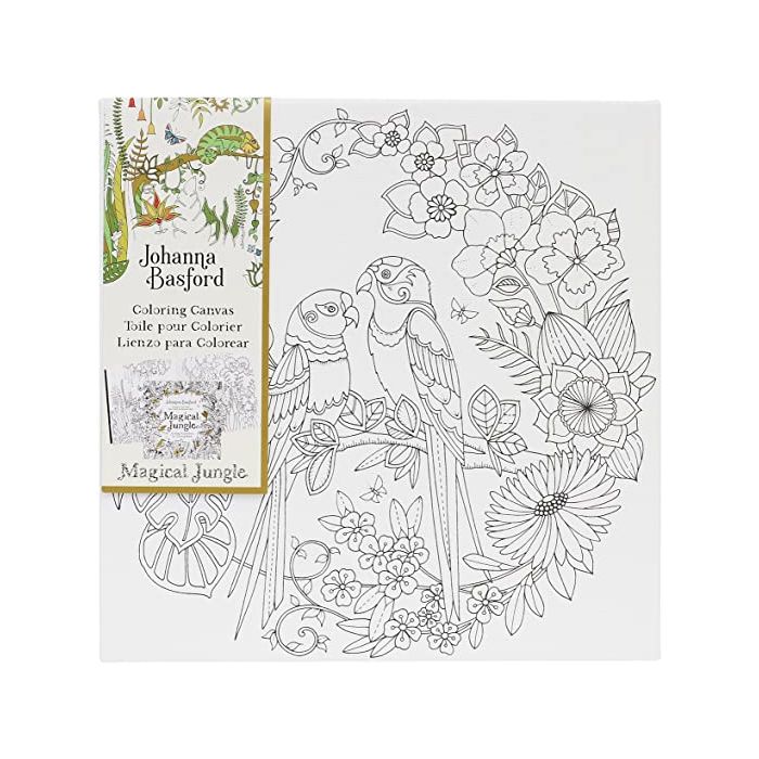 Description / Magical Jungle Parrot Coloring Canvas 12x12 Johanna Basford