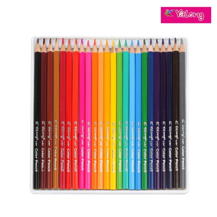 We present you three-sided coloured wooden pencils of Yalong 24colours with gold drawing on the edge of the face. Cardboard packaging with Euro suspension, certified wood, environmental, very bright saturated colours. Easy to sharpen, do not crumble, ideal for kindergarten and school. Products comply with GOST and international environmental standards.