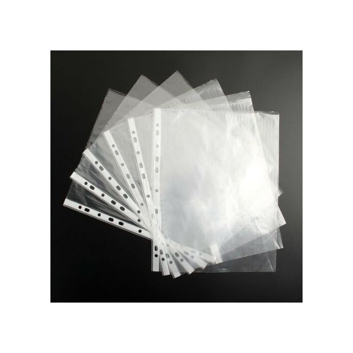 Excel punched Pocket is a competitive range of office stationery. These embossed polypropylene punched pockets securely store your important paperwork with a top opening. Made of durable polypropylene which is copy-safe to protect your written and typed A4 documents, and that allows you to flip pages with ease. Reinforced white multi-punched edge, allowing you to store unpatched documents in a ring binder or lever arch file. This pack contains 100 wallets