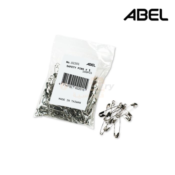 Safety Pins #1 (100 pcs) - ABEL 02201 are high-quality, durable safety pins designed for a variety of uses, such as fastening, mending clothes, or organizing items. These pins are size #1, which makes them medium-sized and versatile for different tasks. The pack contains 100 pieces, ensuring you have plenty on hand for everyday needs. Each pin is made from strong metal with a secure clasp, ensuring safety and reliability. These safety pins are ideal for both home and professional use, offering a practical solution for quick fixes and organization.