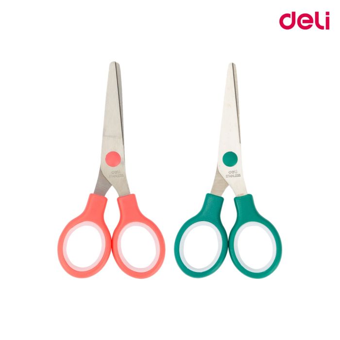 The School Scissors 132mm Deli - 6007 are 132mm scissors designed for children and students. They come in a vibrant blue and pink color, offering a fun, appealing look for young users. With rounded tips for safety and an ergonomic handle for a comfortable grip, these scissors are perfect for use in schools and home craft activities. They are ideal for cutting paper, cardboard, and other lightweight materials, ensuring ease and safety during arts and crafts projects.