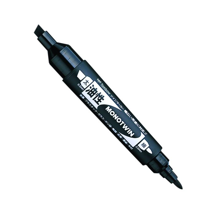 A twin-tipped oil-based ink marker for a wide range of materials such as paper, metal, plastic, and glass. Two types of pen tips "thick / thin" and "fine / ultra-fine" are available.