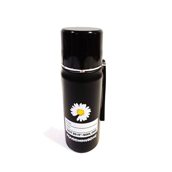 Description / Water Bottle Black with yellow flowers design A - 420ML