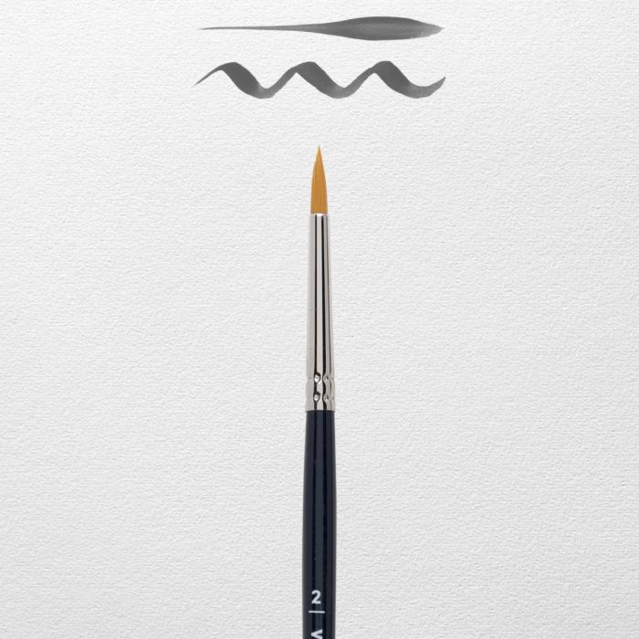 Crafted with care and shaped by hand, this water colour brush has a flexible hair bundle resistant to wear. The golden synthetic hair bundle can absorb a large amount of water and has a round shape with a very fine tip for detailed working. This brush has a hair bundle width of 2.9 mm
