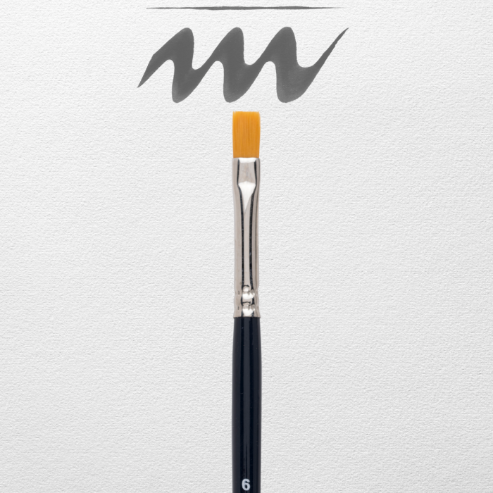 Crafted with care and shaped by hand, this water colour brush has a flexible hair bundle resistant to wear. The golden synthetic hair bundle can absorb a large amount of water and has a flat (Gussow) shape to defining planes and form in a figure painting or to create chisel like lines. This brush has a hair bundle width of 5.3 mm