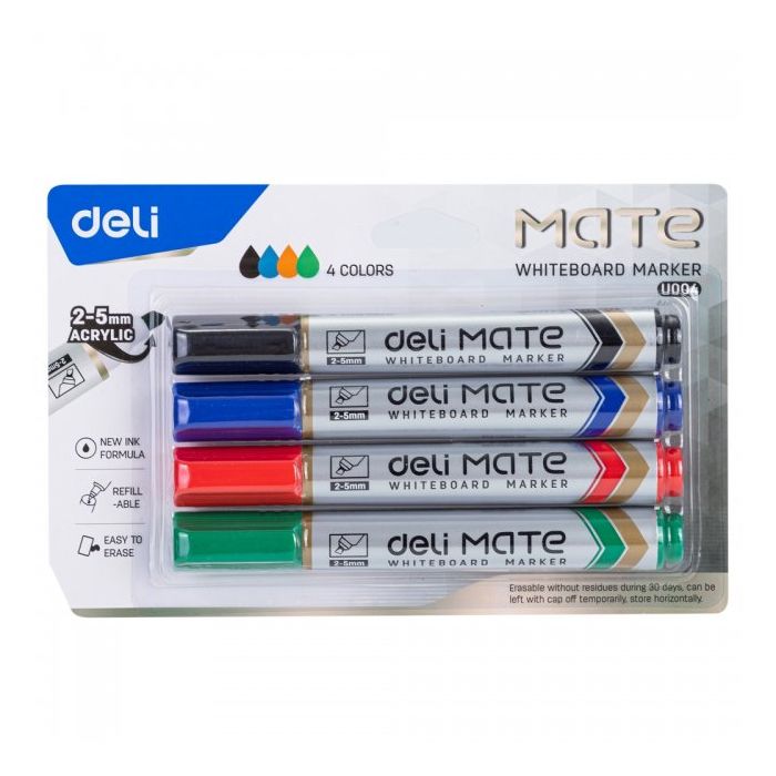In summary, the White Board Marker Flat Tip Set Of 4 Deli - U00403 is a practical and eco-friendly choice for anyone who needs high-quality, dependable writing tools. With its array of benefits and features, this set is perfect for professionals, educators, and learners alike. Whether you're conducting an important meeting, teaching a class, or brainstorming your next big project, these markers will serve as your trusty companion, ensuring that your ideas are communicated clearly and effectively. Add this versatile set to your collection today and revolutionize the way you work with whiteboards.