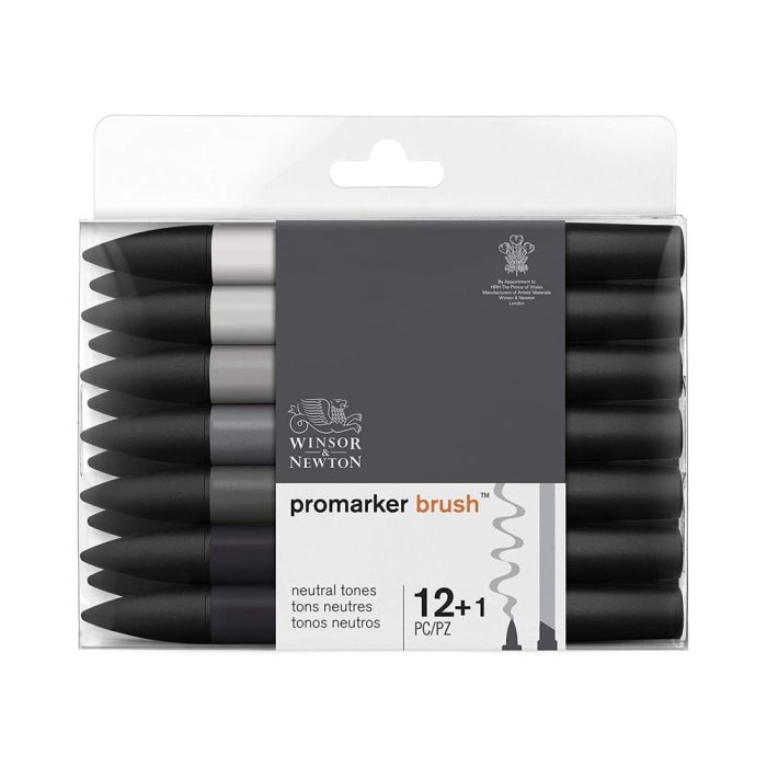 Description / Winsor & Newton ProMarker Brush Set, 12 Count, Neutral Tones