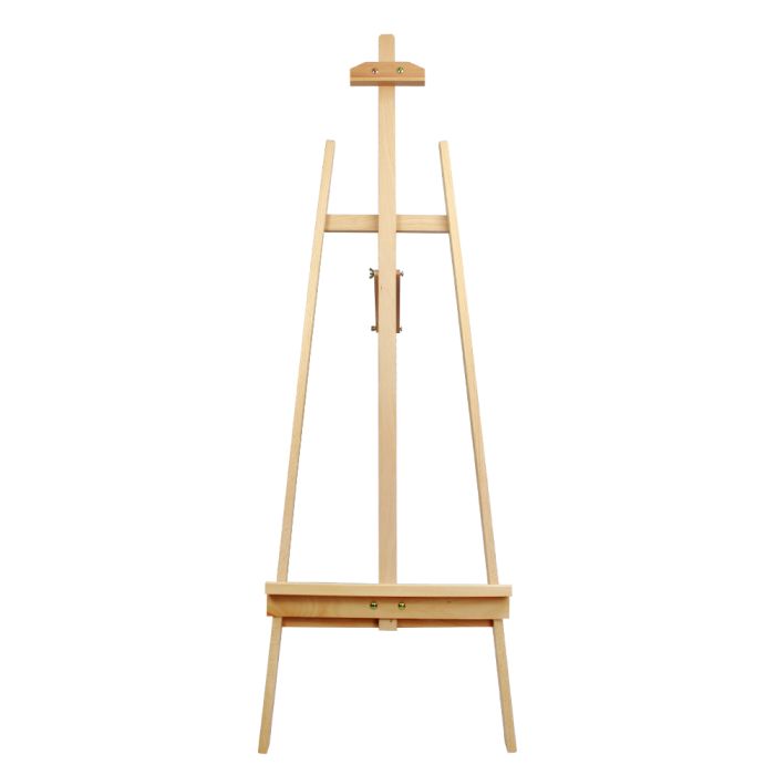 This wooden display, art easel presents your artwork attractively. The display possibilities with this painting stand are endless. This art easel, also known as a picture display, is built from natural Elm wood. The solid wood construction ensures the studio stand will last longer than other comparable units. This art easel also utilizes a minimal footprint, saving you floor space. As a result, this painter display is great for use in places with limited space. The natural finish of this art easel provides a neutral stand that will not detract the viewer's eye away from the artwork. This wooden tripod stand can also be used by hotels and resorts to display paintings in a lobby or meeting room.