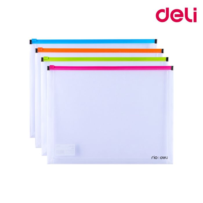 Keep your stationery supplies and consumables in place with Deli Zipper Bag. It is made with a transparent printed material, which allows you to see the contents of the bag.