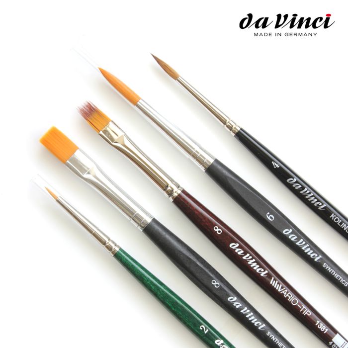 Da Vinci Junior Rounds are a well built, easy to use brush developed to improve the quality of brushes for beginners. This set includes large sizes, Rounds sizes 8 and 12 with a Flat Size 8. They can be used with any type of paint and are easy to clean. The "hold it like a pencil" handle shape makes for a comfortable and familiar grip. Unlike most cheaper brushes, da Vinci Junior features a ''rust resistant'' seamless steel ferrule. Made in Germany.