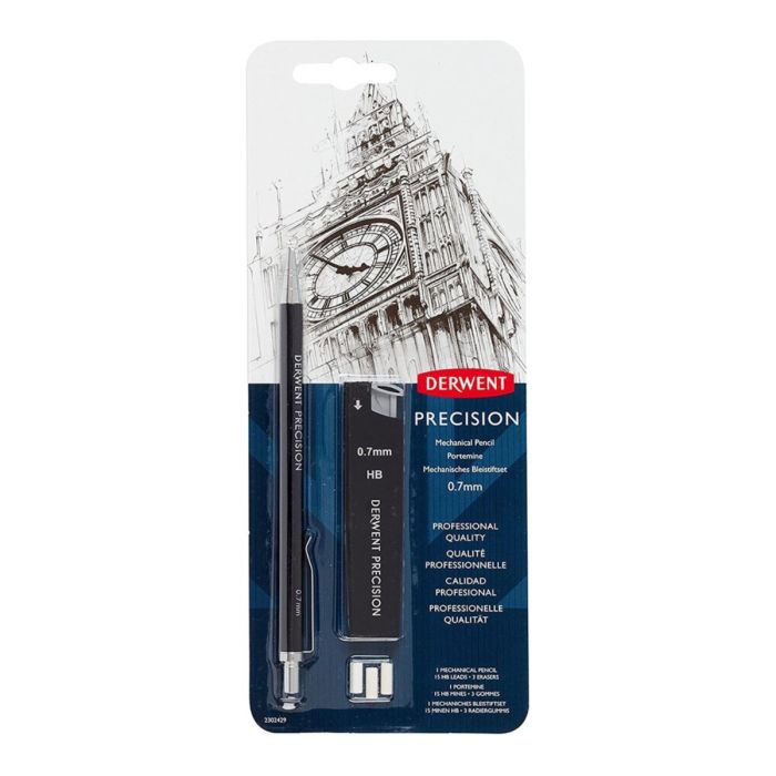 Derwent Precision Mechanical Pencils have a premium full metal body, perfect for maintaining grip and balance whilst creating fine line drawings. Available in 0.5mm and 0.7mm barrels and HB and 2B graphite leads.