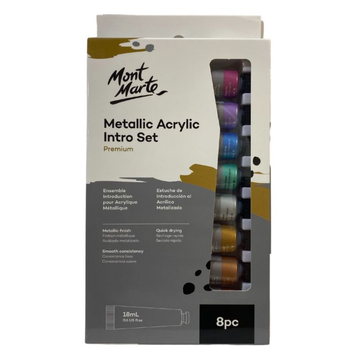 الوصف / مجموعة مونت مارتي للألوان الأكريلية المعدنية - 8 قطع × 18 مل