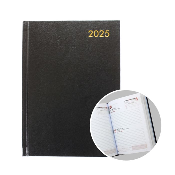 Description / 2025 A5 Half Page Black Hard Diary - SAT/SUN Edition