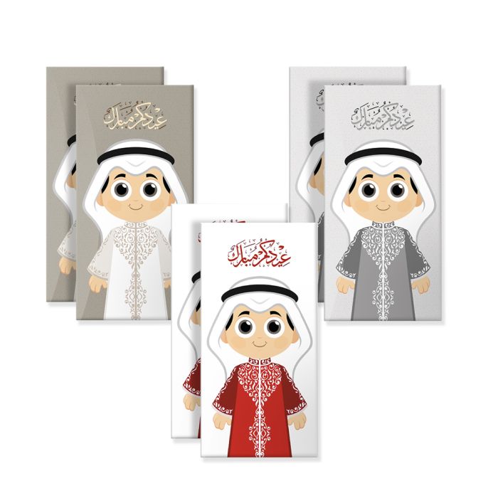 Description / Al Fakhama Set of 6 Eid Greeting Envelope - Boys Design 2024