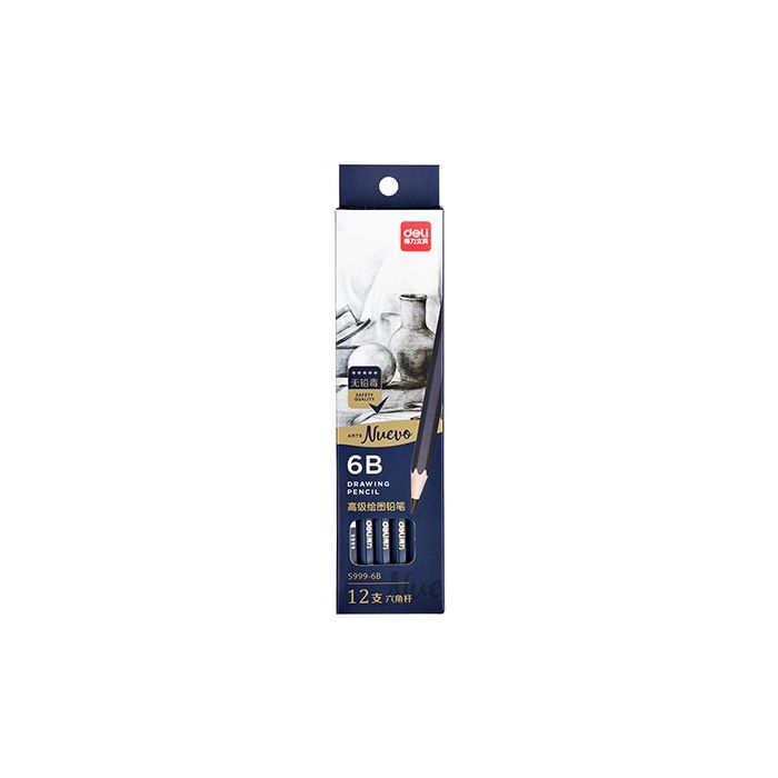 Deli 12Pcs/box All Series Advanced 6B Pencil Student Sketching Woodworking Pencils Drawing Set Professional S999-6B