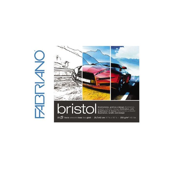 Fabriano Bristol Pad 250gsm. 20 Sheets per pad. Bristol Paper is resistant to solvent based markers and it can withstand repeated erasures. Ideal for ink, airbrush, ballpoint, pencil. Perfect for illustration, design and manga.