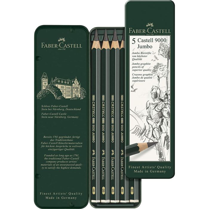 Castell 9000 Jumbo graphite pencil, tin of 5 The high quality Castell 9000 artists' pencil is also available in a Jumbo option with an extra thick graphite lead. The Castell 9000 Jumbo is perfectly suited for quick sketches and drafts as well as shading extended areas and artistic work.