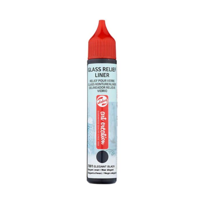 Product description Glass Relief Liner is a liner that allows you to add 3D accents to glass. Use the liner to easily create outlines for drawings made with Glass & Porcelain paint or to add 3D details, dots and lines to glass objects. Glass Relief Liner is available in 3 colours. For an optimal 3D effect, hold the tip just above the surface and smoothly press the paint out of the liner.How to use:Before applying the paint, make sure the object is clean, grease-free and dry. Apply the liner directly from the tube and remove any excess paint or mistakes with warm water. After applying your design, let the paint dry for 45 minutes. Place the painted object in the cold oven, set the oven to 160 °C and bake your work for 45 minutes once the oven is at the right temperature. Washable by hand after fixing. For decorative purposes only.