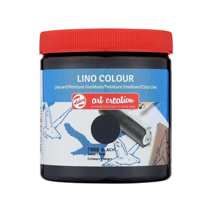 Lino Colour 250 ml Black (7000) 443670000 A water-based linoleum paint for Lino printing. The paint has an excellent covering capacity, and is highly pigmented and lightfast. Application: smooth roller to apply the paint to the stamp.