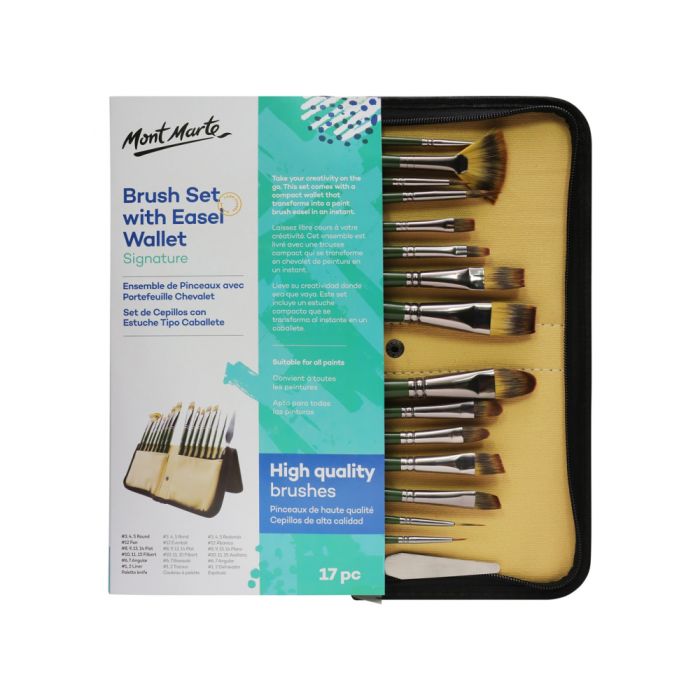 Description / Mont Marte Signature Brush Set with Easel Wallet 17pc