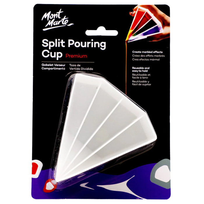 Create exciting patterns using our Split Pouring Cup. This cleverly designed cup comes in an ergonomic diamond shape with a spout, making it easy to hold and giving you greater control over your pours. Plus, it offers four paint sections to give you extra colour combo options. Then, when you're ready to clean up, just wash the cup and store it to reuse next time. So, if you're ready to make your very own marbled masterpiece, pick up a paint pouring cup today!